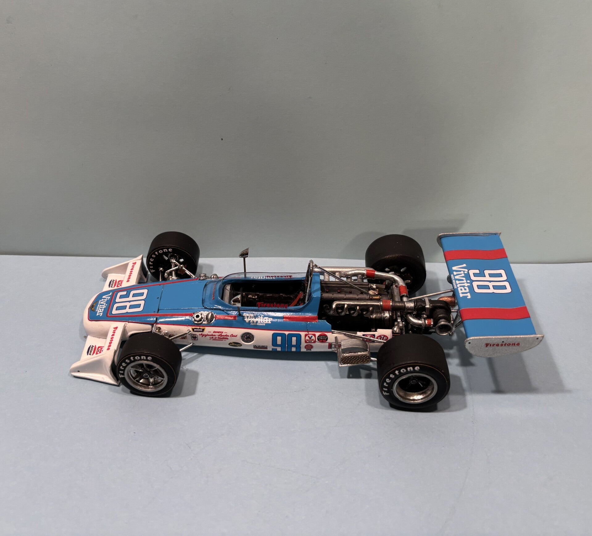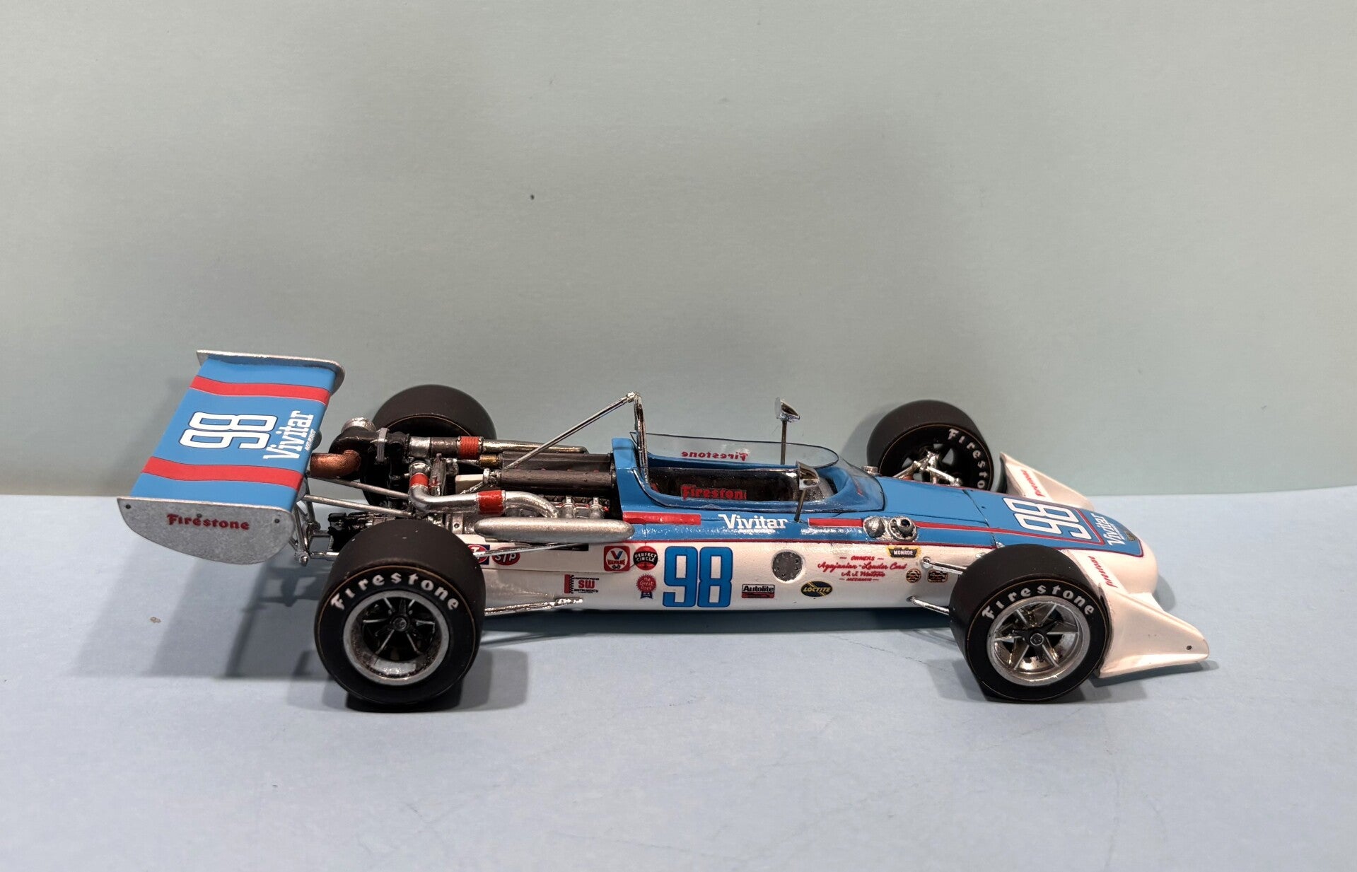 This is a 1972 Mike Mosley car as driven in the Indy 500. This is a semi kit so you will need a donor, 1968 AMT Eagle kit. Complete instructions with plenty of photos. All resin kit with white metal turbo. Decals included.